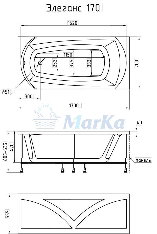Акриловая ванна 1MarKa Marka One Elegance 170х70