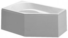 Акриловая угловая ванна нестандартной интересной формы вместимостью 175 литров для компактного размещения в ограниченном пространстве.