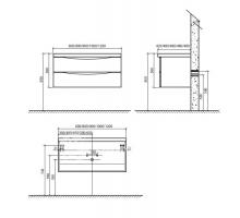 - База под раковину подвесная с двумя выкатными ящиками, с доводчиками, 1200x480x450. C врезной (фрезерованной) ручкой в плоскости фасада ANCONA-N-1200-2C-SO