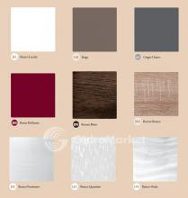 Цветовые исполнения: Bianco Lucido (BL); Beige (GB); Grigio Chiaro (GC); Rosso Brilliante (RB); Bianco Quadrato (QU); Bianco Onda (ON); Bianco Frassinato (BF); Rovere Moro (RW); Rovere Bianco (WO)