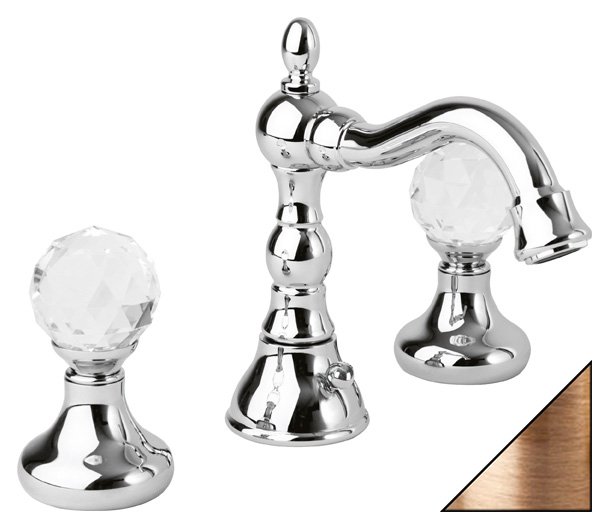 Смеситель на раковину на три отверстия с донным клапаном, ручки Swarovski