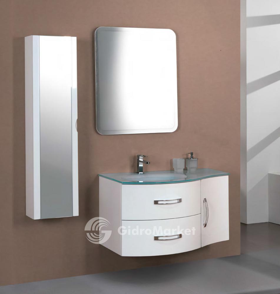 44676 Колонна подвесная с одной распашной дверцей и наружным зеркалом, реверсная, 35х20х140 Bianco Lucido