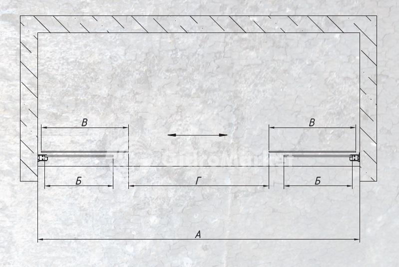 Двухстворчатая раздвижная дверь, с двумя неподвижными элементами