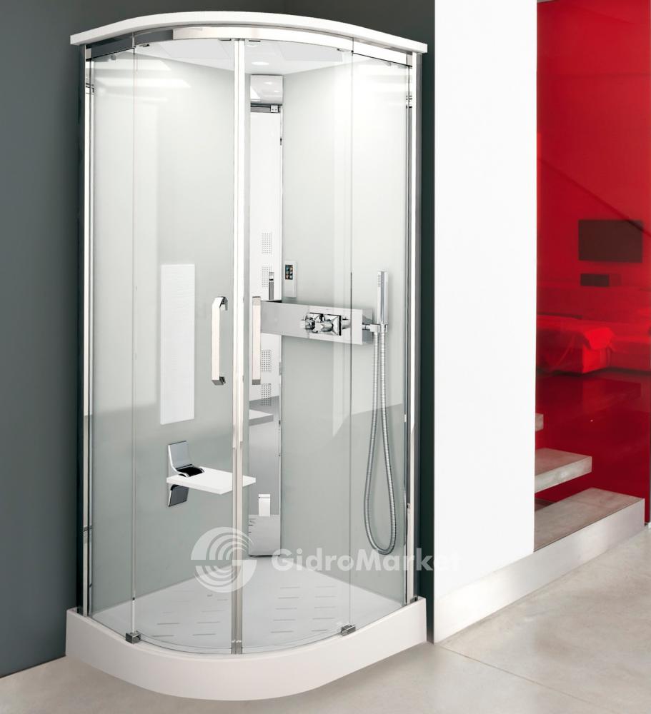 Душевая кабина с угловой установкой и двумя вариантами поддона - высотой 8 см и 15 см.