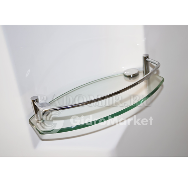 Душевой бокс «ЛАУРА» с крышей типа «сэндвич», чаша ванны, рама-подставка, слив-перелив полуавтоматический, фронтальная панель, боковые стенки, крыша, стеклянные шторки, вертикальный душ «Тропический дождь», смеситель, излив «МиниСфера» - 2 шт., 2 стеклянные полочки, ручной душ.