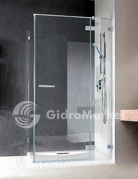 Г-образная душевая кабина с одностворчатой распашной дверью.