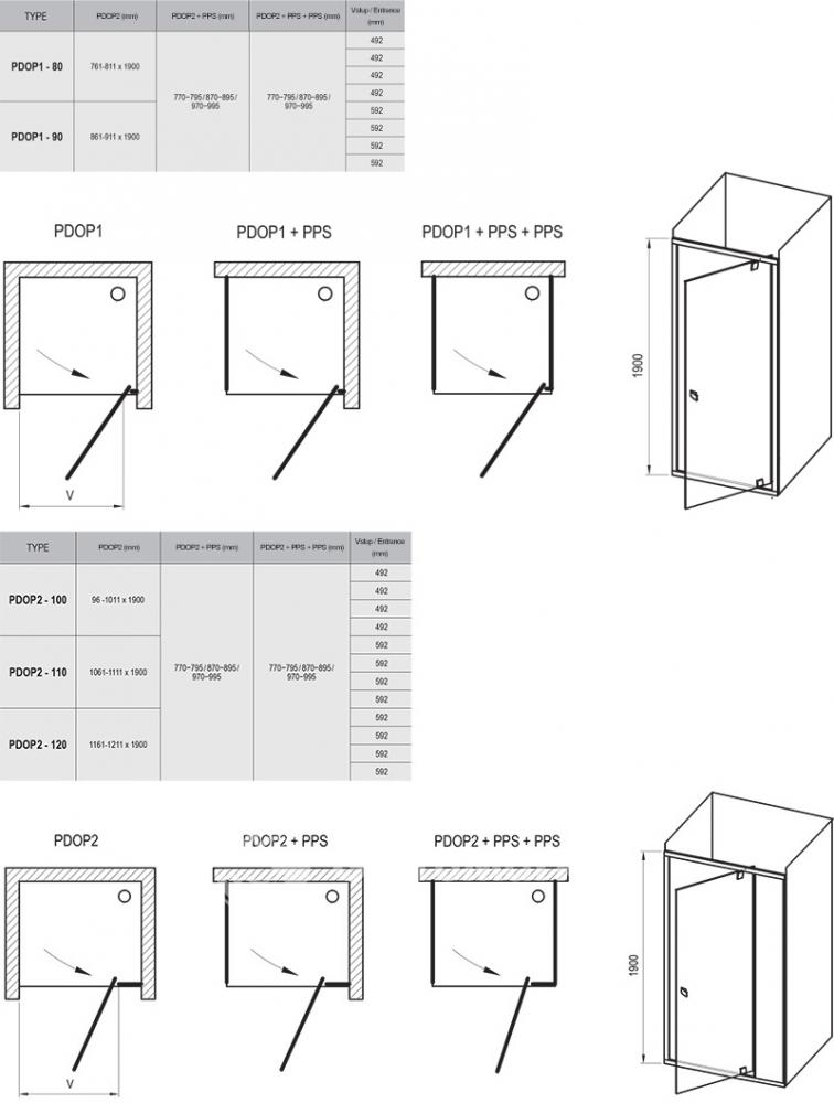Для создания душевого уголка необходимо два изделия SRV2-S. С помощью комбинации разных размеров двух частей получите квадратный или прямоугольный варианты душевого уголка (н-р, 75 x 90 см, 90 x 90 см, 80 x 100 см и т.д.). Устанавливается в облицованный кафелем угол ванной комнаты на поддоны RAVAK ANETA, ANGELA, PERSEUS, PERSEUS PRO, PERSEUS PRO FLAT, PERSEUS PRO CHROME, GIGANT PRO, GIGANT PRO FLAT, GIGANT PRO CHROME или непосредственно на пол со встроенным душевым каналом или трапом. С помощью регулирующих профилей NPS душевой уголок можно адаптировать к нестандартным размерам строительного проема.
