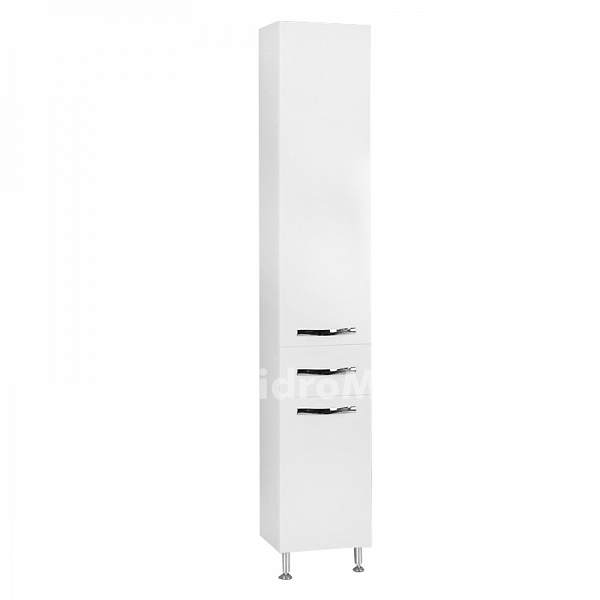 Вариант модели, устанавливаемый на ножках, регулируемых по высоте. В тумбе уже 3 выдвижных ящика, а шкаф помимо вместительной бельевой корзины оснащен ящиком для небольших аксессуаров.