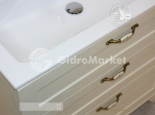 Модель ЛЕОН с шириной раковины 65 см доступна и в напольном исполнении. Тумба дополнительно снабжена надежными мебельными навесами. В тумбе установлены 3 ящика, и, помимо стандартного подключения водоснабжения и канализации (из стены), предусмотрена возможность подключения труб снизу. Тумба комплектуется раковиной из литого мрамора собственного производства АКВАТОН.