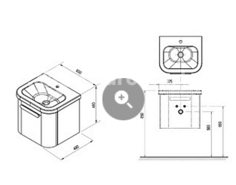 - Раковина - керамическая, с переливом, с отверстием диаметром 35 мм;