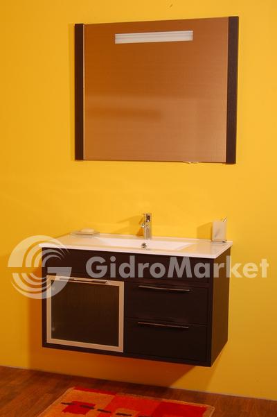Комплект состоит из подвесной тумбы с двумя выдвижными ящиками на доводчиках, и одной распашной стеклянной дверцей. В комплект входит керамическая раковина. Цвет на выбор, покрытие пленка (венге, лиственница, белый глянец, желтый глянец, красный глянец, черный глянец, зебрано, ланселот, капучино, бамбук-сталь ,шоколад, кедр).