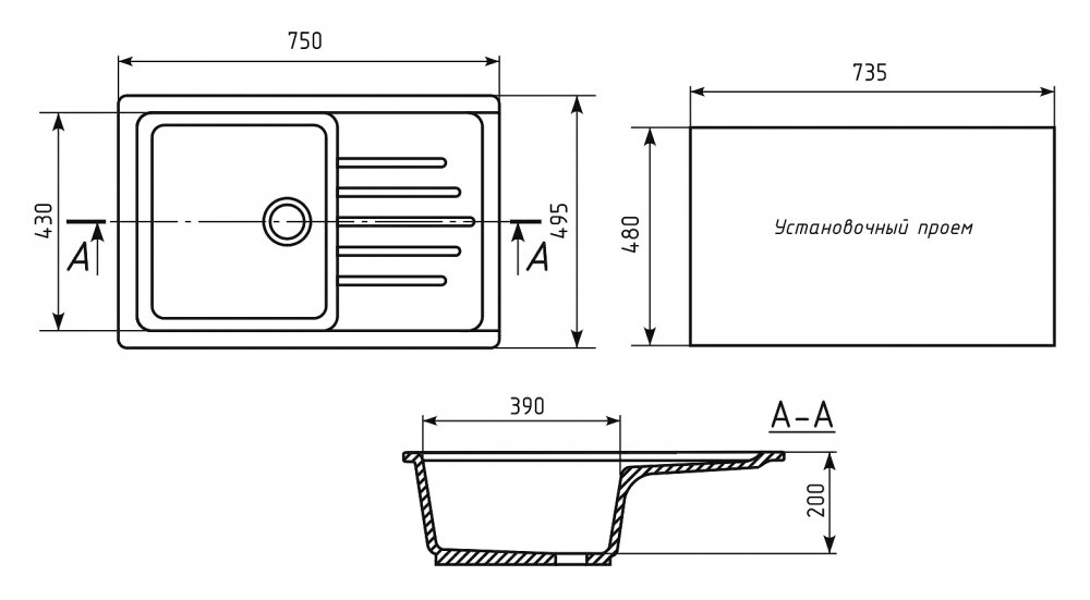 Оснащение: корзинчатый вентиль, слив-перелив, герметик