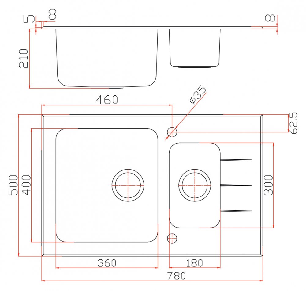 Оснащение: крепления, корзинчатый вентиль, сифон