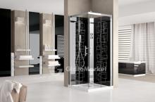 Душевая кабина с угловой установкой и двумя вариантами поддона - высотой 8 см и 15 см.