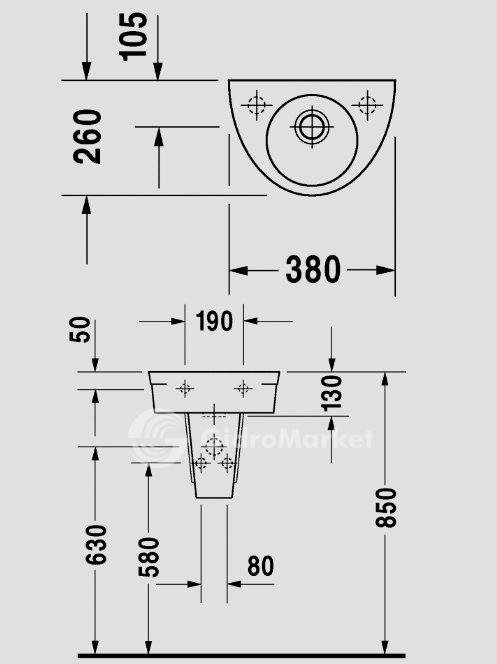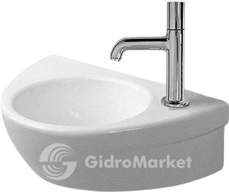 Умывальник для рук 38 см, плоскость под кран/смеситель, без переливного отверстия , с отверстием для крана 3 см слева и справа.