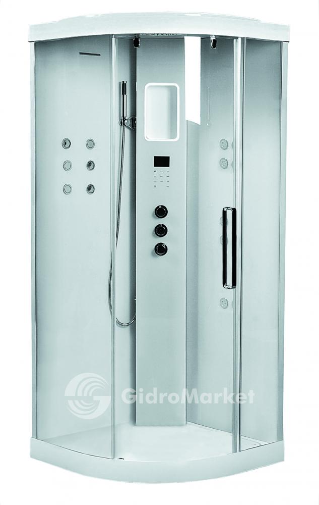 - Водопад, верхний душ, подсветка интегрированная в купол, сенсорный пульт, радио, вентилятор, паровая баня с цифровой системой управления, смеситель с термостатом.