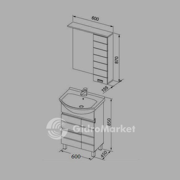 - зеркало, с LED подсветкой, 600х870x166 мм