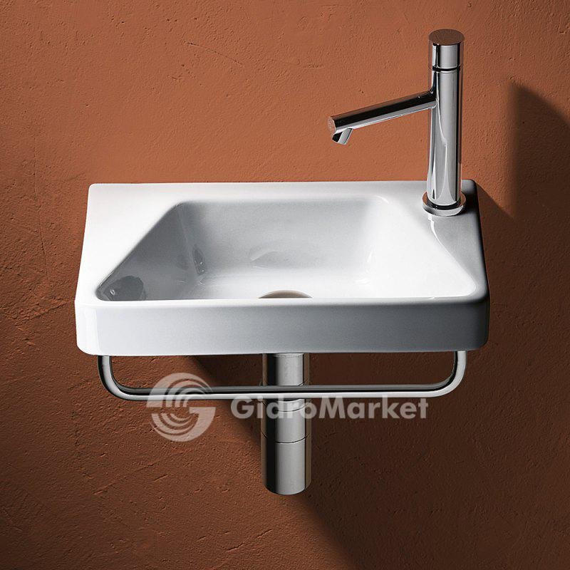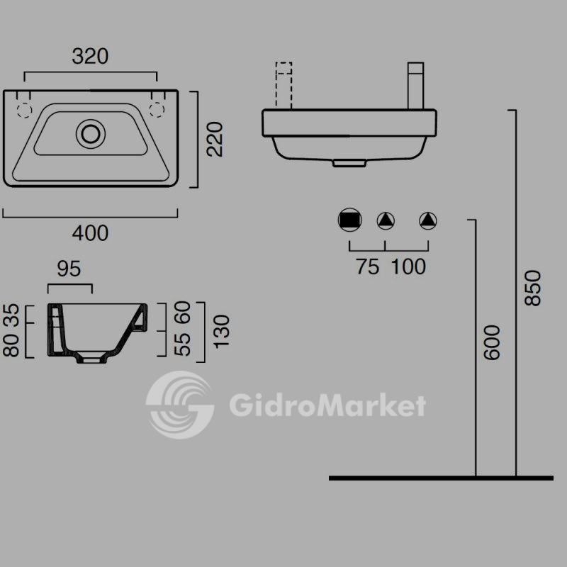 Раковина с 2-мя подготовленными отверстиями для монтажа смесителя (слева или справа) или из стены. Подвесная,полувстраиваемая или для установки на мебель. Без перелива