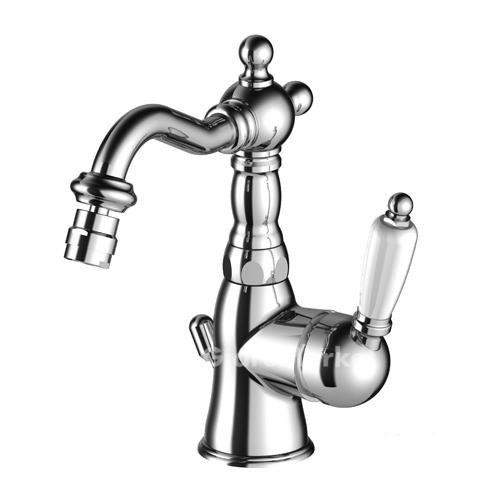 Смеситель для биде с высоким изливом, с белой ручкой, с донным клапаном, цвет хром, бронза, золото