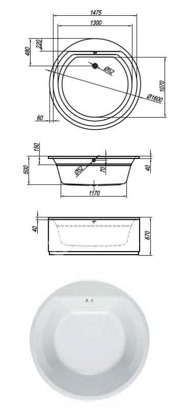 Размер 160×160 см и круглые очертания предполагают монтаж чаши посредине ванной комнаты.