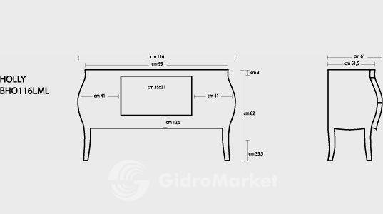 - база под раковину с двумя выдвижными ящиками, артикул BHO116LBL, отделка - белый глянец
