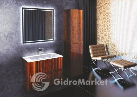 Тумба под раковину имеет размеры 75х40x58см, с двумя выдвигающимися ящиками. Фасад мебели изготовлен из влагостойкого МДФ, покрашенного и покрытого лаком.
