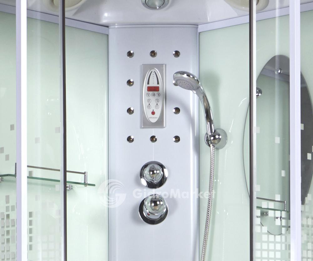 Угловая гидромассажная кабина с глубоким поддоном 90х90 см: