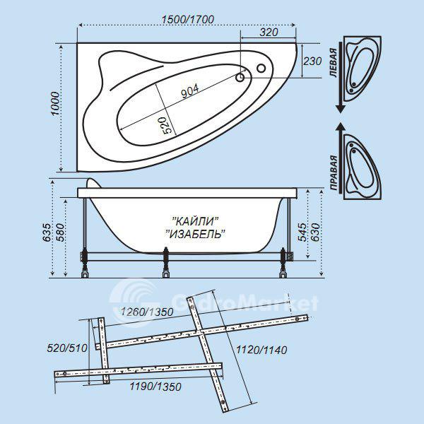 • компактные размеры (длина 150 см, ширина 100 см), позволяющие установить чашу даже в небольшом помещении;
