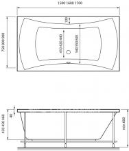 Гидромассаж - 6 форсунок, аэромассаж - 10 форсунок, пневмоуправление.