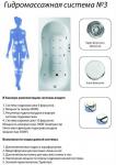Гидромассаж - 6 форсунок, аэромассаж - 10 форсунок, спинной массаж - 6 форсунок, электронное управление, хромотерапия