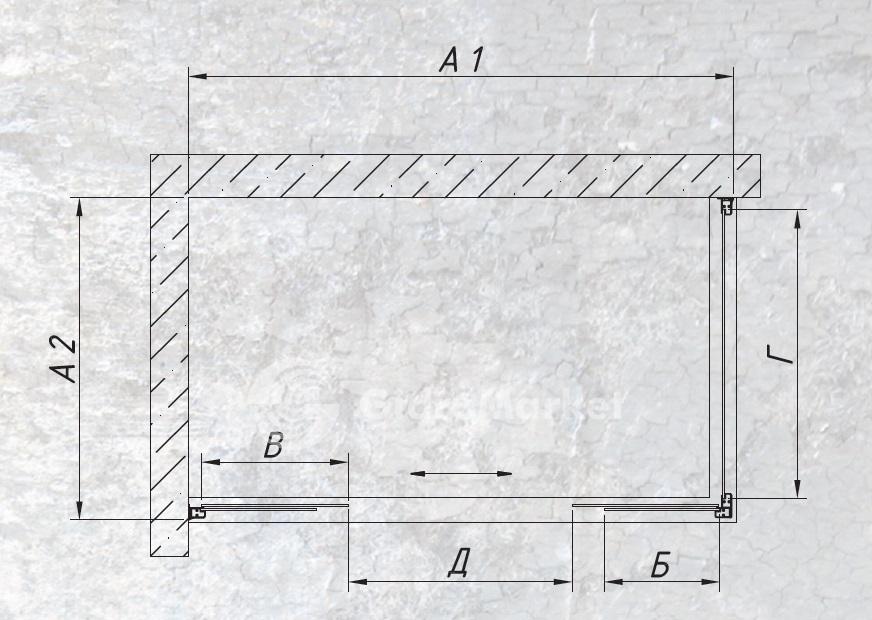 Ограждение на ванну раздвижное вход в центре с неподвижной боковой стороной