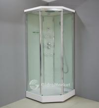 Финская душевая кабина с низким акриловым поддоном в форме пятиугольника, размером 90х90 см и высотой 15 см. Модель оборудована распашной дверью из прочного 6-ти миллиметрового стекла.