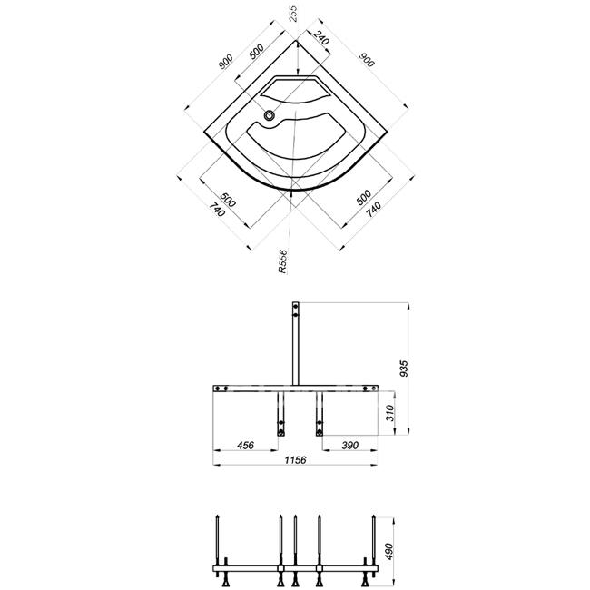 Душевая кабина с глубоким поддоном, без крыши, с возможностью выбора душевой системы.