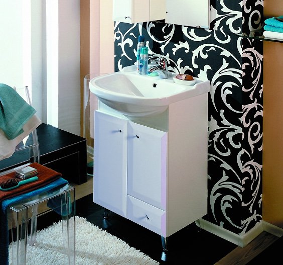 Эта коллекция для небольших ванных комнат выполнена в строгом традиционном стиле и белом цвете. В тумбе за распашными фасадами установлена регулируемая по высоте полка. Тумба этой коллекции комплектуется регулируемыми по высоте ножками.