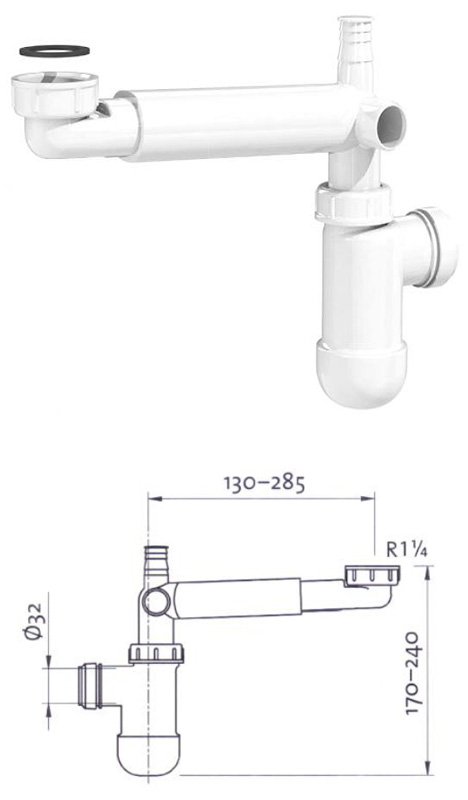 В комплектацию тумбы дополнительно включен сифон (производство Финляндия). Размер сифона подобран специально под параметры тумбы.