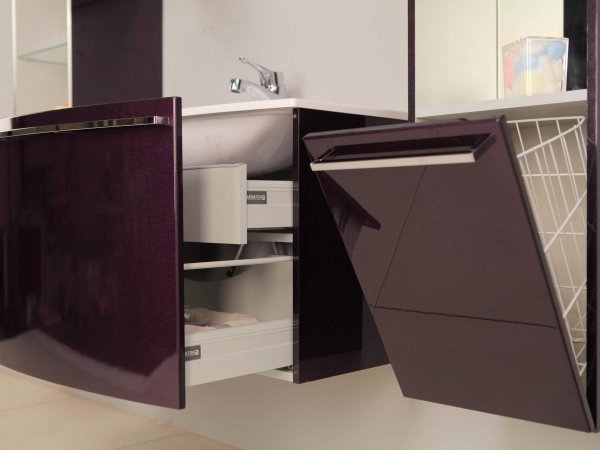 В тумбе установлены удобные системы организации пространства, а за большим фасадом, помимо основногоящика, непосредственно под раковиной, предусмотрен скрытый ящик, предназначенный для мелких предметов. На дне ящиков –специальные антискользящие коврики, благодаря которым предметы, сложенные в ящики, не скользят и не гремят при открывании изакрывании.