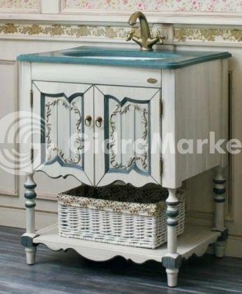 Тумба с раковиной Atoll Флоренция, 907*750*560 мм. Фасад МДФ, покраска, цвет "ivory old" (состаренная слоновая кость), синяя патина, раковина врезная Devit.